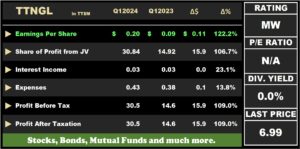 Having weathered the storm in FY2023, TTNGL reported an Earnings per Share (EPS) of $0.20 for the first quarter ended 31st March 2024 (Q12024), $0.11 higher than a previous $0.09 in Q12023.