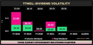 This week, at Bourse, we assess the financial performance of Trinidad and Tobago NGL Limited (TTNGL) for the fiscal year ending December 31st, 2023, and the first quarter ending March 31st, 2024, as well as National Enterprises Limited (NEL) for the six months ending March 31st, 2024. TTNGL’s delayed publication of its audited financials – for the second consecutive year – revealed a decline in earnings due to operational challenges faced by its sole asset, Phoenix Park Gas Processors Limited (PPGPL). However, there was a positive turn in Q12024, with increased profits from PPGPL contributing to improved financial performance. Conversely, NEL experienced reduced dividend income and an unrealized decrease in fair value from one of its investments in the Energy Sector.