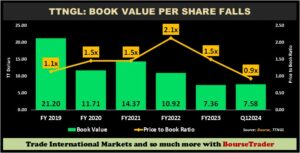 TTNGL’s book value per share contacted in FY2023, attributed to a decline in profitability of its sole investee company (PPGPL) following lower energy commodity prices.