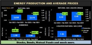 Within the period October 2023 – February 2024 Natural Gas production in T&T averaged 2,574 mmcf/d, lower than an average of 2,638 mmcf/d in the prior comparable period. The average price of Natural Gas (using Henry Hub pricing) declined 41.0% year-on-year (YoY) to US$2.62/MMBtu for the period October 2023- February 2024, relative to a previous average of US$4.44/MMBtu.