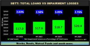SBTT recorded a 9.3% increase in its Total Loan Portfolio from $18.7B in HY 2023 to $20.4B in HY2024, as continued recovery in economic activity supported loan demand. Loans to Customers (95.5% of Total Loans), the Bank’s largest interest earnings asset, saw an increase of $1.3B or 7.2%, while still maintaining high level of credit quality. Loans and advances to banks and related companies improved 81.5%.