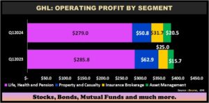 Operating Profit for the period came in at $302.4M during the three–month period, contracting 1.1% from the prior comparable period. Life, Health and Pension (LHP) (92.3% of operating profit) declined 2.4% year on year from $285.8M to $279.0M, primarily due to higher insurance finance expenses (despite revenue growth). The Property and Casualty Segment (16.8% of Operating Profit) fell 19.3% to $50.8M in Q12024, with higher revenue more than offset by increased expenses.  Insurance Brokerage rose to $31.7M, due to increased fee and commission income from brokerage activities. Asset Management saw the largest gain, expanding 30.8% from $15.7M in Q12023 to $20.5M in Q12024.