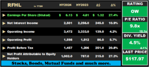 At a current price of $117.97, RFHL trades at a trailing P/E of 9.8 times, below the Banking Sector average of 12.1 times. The stock offers investors a trailing dividend yield of 4.5%, above the sector average of 4.1%. The company announced an interim dividend of $0.60 payable on May 29th, 2024, to shareholders on record by May 10th, 2024.
